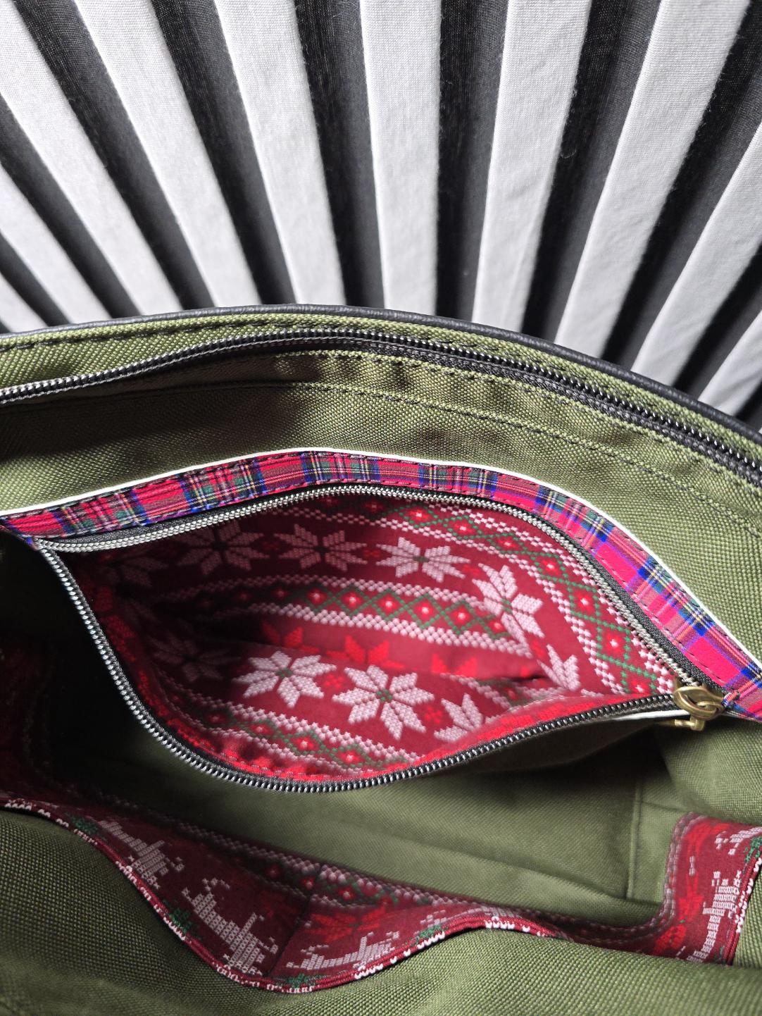 This bag is handmade by me using the Mr. Heckles pattern at 85% by Sincerely Jen. It has been altered to accommodate the applique. The applique is hand cut and meticulously sewn on using a domestic sewing machine.